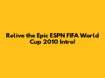 Remember the thrill, the excitement, the sheer anticipation? Guys, let's take a trip down memory lane and relive the iconic ESPN intro for the 2010 FIFA World Cup! This wasn't just an introduction; it was a statement. It set the stage for a tournament filled with unforgettable moments, dramatic upsets, and global unity. We're going to dive deep into what made this intro so special, why it resonated with millions of fans worldwide, and why it still holds a special place in the hearts of football (or soccer, for our American friends!) enthusiasts today. From the electrifying music to the stunning visuals, every element worked together to create a masterpiece of sports broadcasting. So, buckle up, because we're about to revisit a piece of World Cup history!