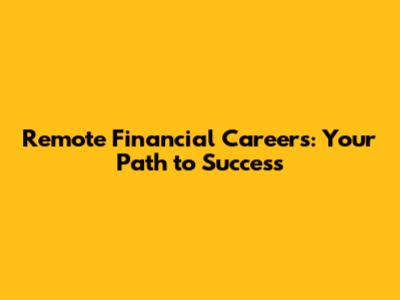 Remote Financial Careers: Your Path To Success
