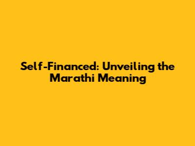 Self-Financed: Understanding The Marathi Meaning