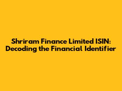 Shriram Finance Limited ISIN: Decoding The Financial Identifier