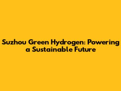 Suzhou Green Hydrogen: Powering A Sustainable Future