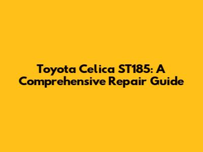 Toyota Celica ST185: A Comprehensive Repair Guide