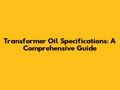 Transformer Oil Specifications: A Comprehensive Guide