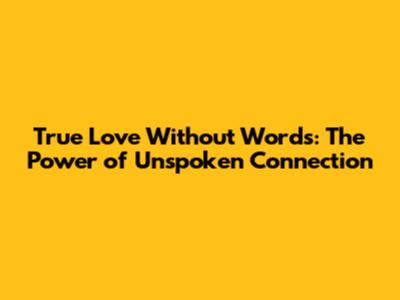 True Love Without Words: The Power Of Unspoken Connection