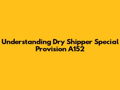 Understanding Dry Shipper Special Provision A152