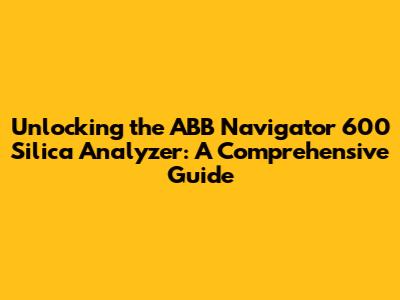 Unlocking The ABB Navigator 600 Silica Analyzer: A Comprehensive Guide