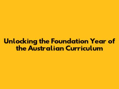 Unlocking The Foundation Year Of The Australian Curriculum