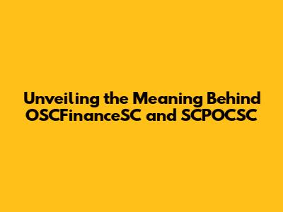Unveiling The Meaning Behind OSCFinanceSC And SCPOCSC