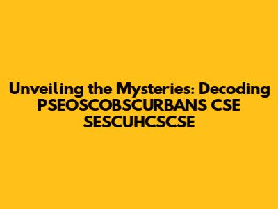 Unveiling The Mysteries: Decoding PSEOSCOBSCURBANS CSE SESCUHCSCSE