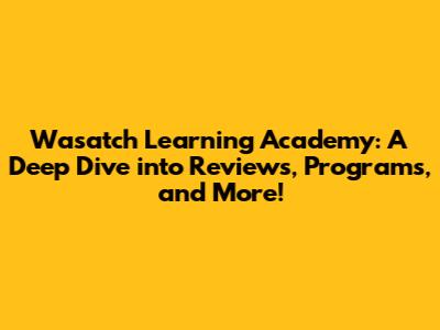 Wasatch Learning Academy: Unveiling Reviews, Programs & More!